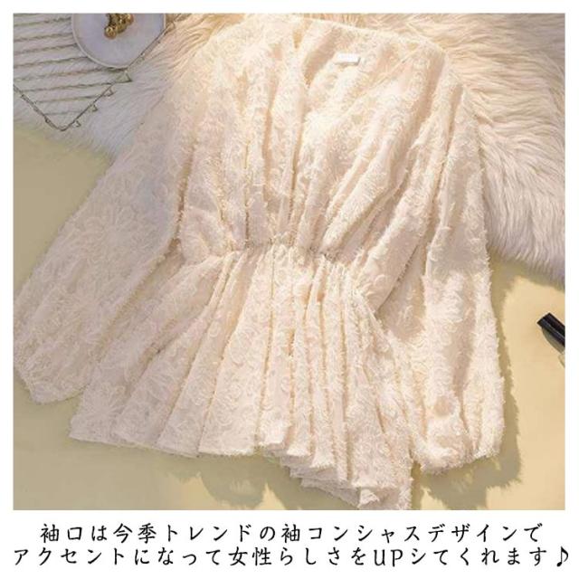 | ふんわり可愛いフレアレースブラウス。 ウェスト切り替えでギャザーをたくさん寄せたチュニック丈。 ドロップショルダーでゆるーい感じで裾に向かって広がったシルエットが可愛い。 ウェストに施された花柄レースがお洒落で上品な女性らしさを演出! ぺプラム調の綺麗なシルエットで着こなしていただけます。 袖口は今季トレンドの袖コンシャスデザインでアクセントになって女性らしさをUPシてくれます♪ ヒップがふんわり隠れる程の丈となっており、ショートパンツやロングパンツで合わせても違った印象でコーディネイトをお楽しみ頂けます。 身幅がゆったりしていて抜け感があるのに、体型カバー出来るのも嬉しいポイント。 | |
