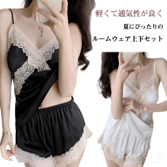 ランジェリー 寝巻き パジャマ ショートパンツ ルームウェア キャミソール セットアップ 短パン 部屋着 涼しい サテン風 パジャマ かわいい 2点セット ナイトウエア 上下 春 夏 秋 リラックス おうち ゆるゆる てろてろ 女性 可愛い