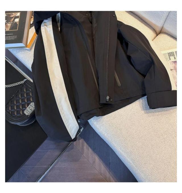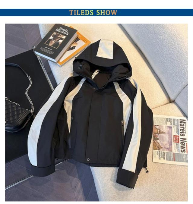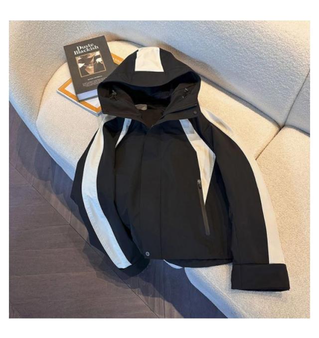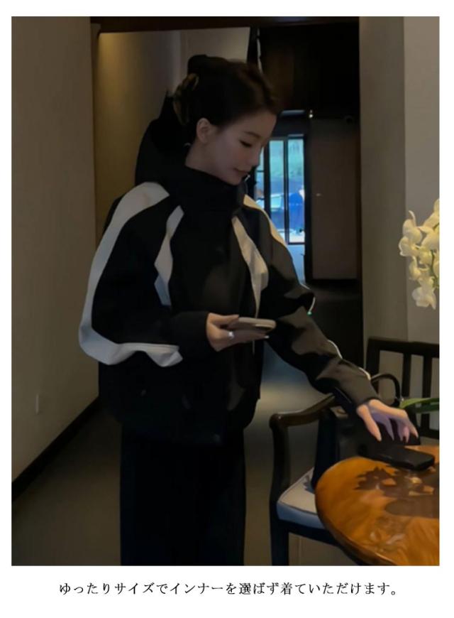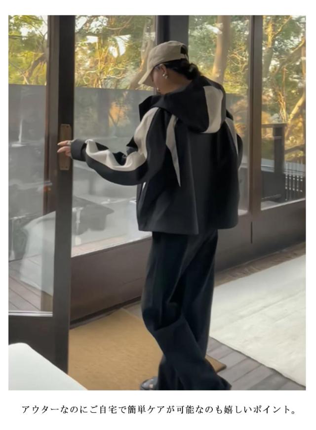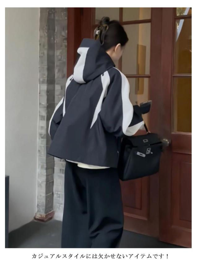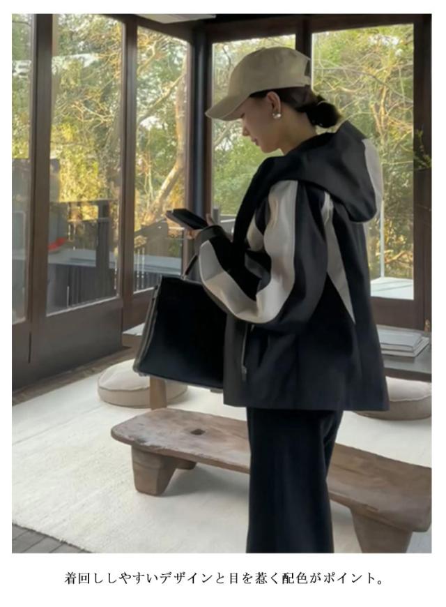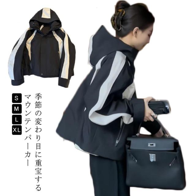 マウンテンパーカー 配色 レディース ブルゾン ジャケット 裏地付き フード付き ショート ゆったり 体型カバー 春 秋 冬 アウター 撥水加工 防寒 防風 ライトアウター 秋物 韓国 大人 カジュアル 通勤 通学 大きいサイズ ブラック 【送無】