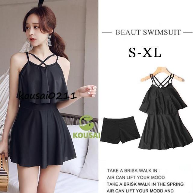 水着 ワンピース レディース 水着体型カバー かわいい ママ水着 2点セット 20代 30代 40代 学生用 韓国風 可愛い