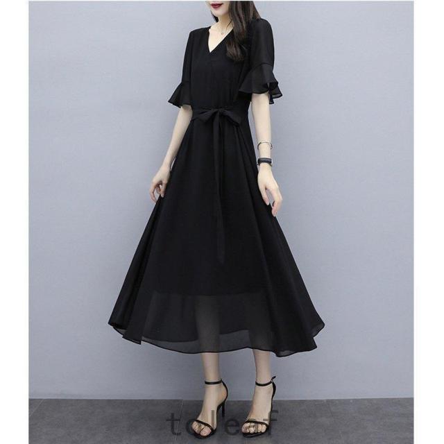 ワンピースレディースシフォンスカートマキシ丈膝丈夏ウエストリボン体型カバーパーティードレスフォーマル通勤結婚式ドレス40代50代