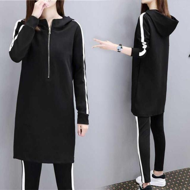 スポーツウェア上下セットレディースパーカーワンピースフード付きジャージセットジャージスキニーパンツパンツ大きいサイズ長袖秋冬細身無地
