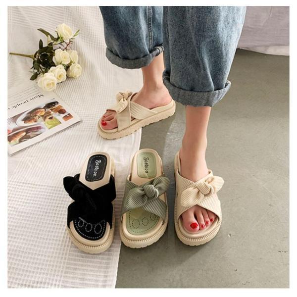 厚底 サンダル スリッパ リボン レディース サマーサンダル 可愛い フラットサンダル 夏シューズ 姫系 美脚 おしゃれ 夏用サンダル 歩きやすい 室内 室外