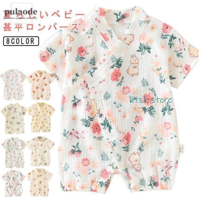 ベビー甚平ロンパース 赤ちゃん ショートオール ダブルガーゼ コットン綿 赤ちゃん 甚平オール 浴衣 キッズ 半袖 じんぺい ベビー服 パジャマ 新生