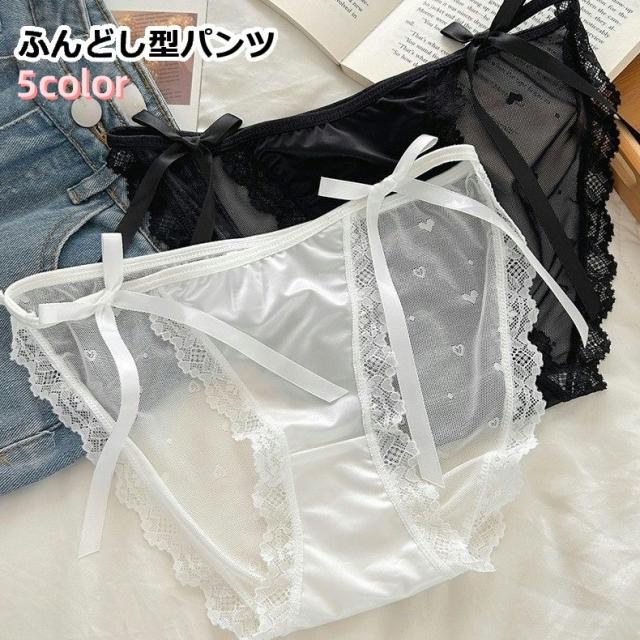 ふんどし型パンツ ショーツ 紐パン 総レース リボン レディース 婦人 インナー パンツ 下着 三角 薄手 サイド紐タイプ アウ
