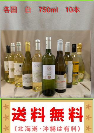 *送料無料 ボルドー金賞など 各国 白 10本セット750ml (北海道、沖縄、は有料)