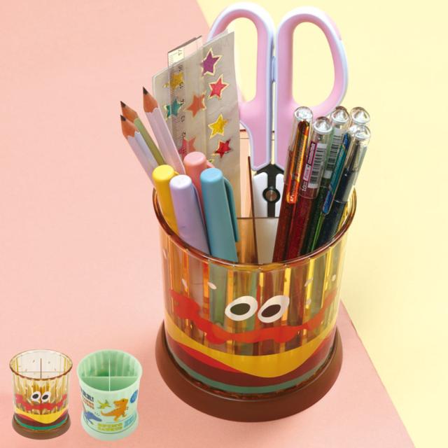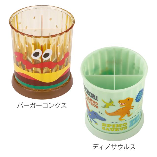 収納ケース 回転式 小物スタンド 小物入れ ( ディノサウルス バーガーコンクス 収納 仕切り 整理 ペン立て ペンスタンド キャラクター 360度 スタンド 文房具 カトラリー ペンホルダー )
