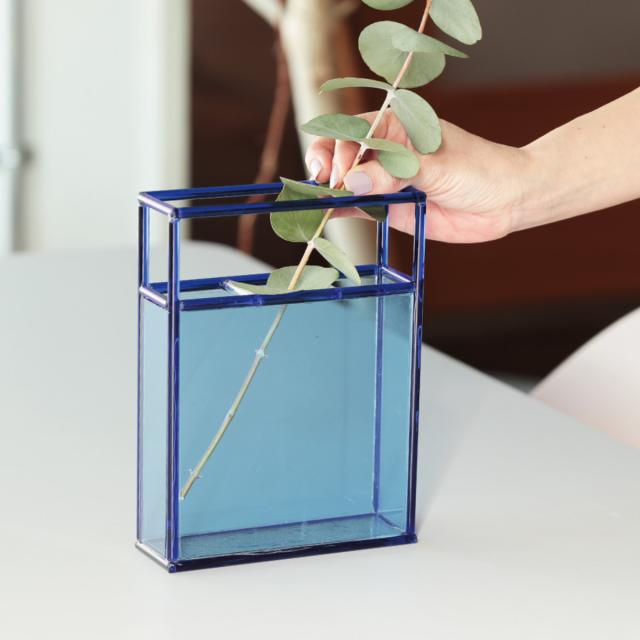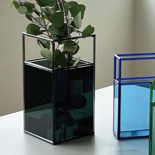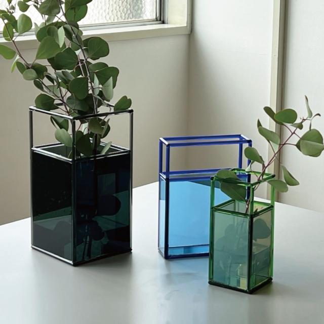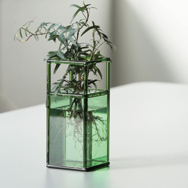 見る角度によって表情が変わり、奥行きも楽しめるガラスベースです。透明感のあるガラスは、花や葉の美しさを際立たせ、光を美しく透過します。