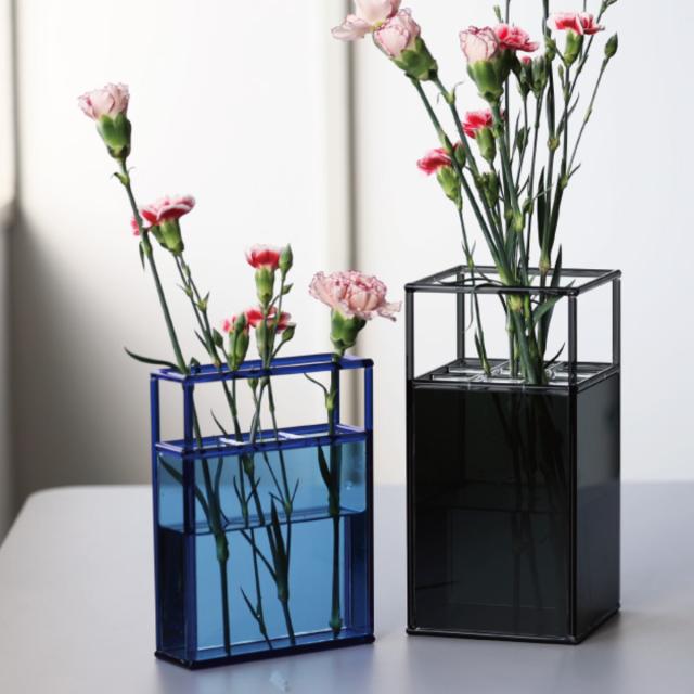切り花やドライフラワーを飾るのはもちろん、水耕栽培にもおすすめです。透明な素材なので、植物の成長を間近で観察することができます。