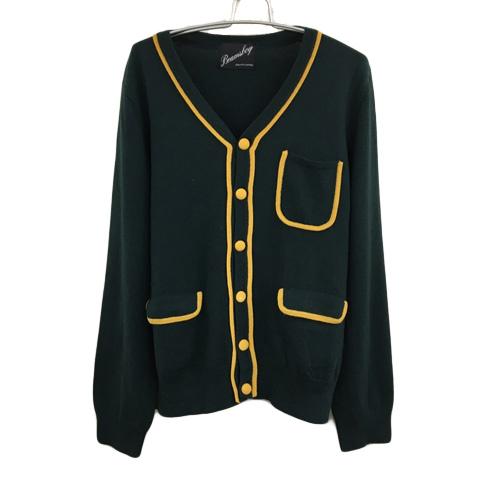 【中古】ビームスボーイ カーディガン ニット ウール Vネック パイピング 長袖 BOY 緑 黄 グリーン イエロー