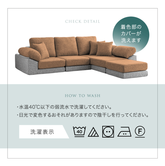 ・カバー:生地のシワがなかなか取れない場合は、低温(150℃まで)でアイロンをかけていただくか、一度お洗濯をし吊り干しいただく事で改善します。