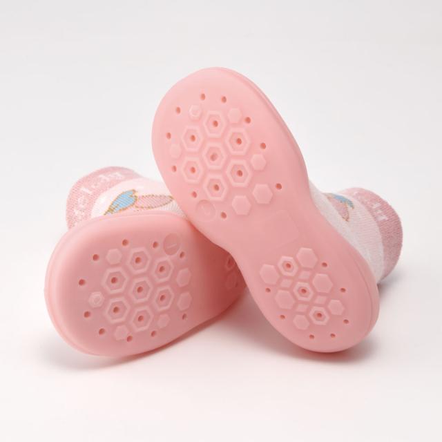 ソールは滑りにくいTPE素材を使用しているので安心です。フローリングの室内で滑る心配がありません。しっかりとした靴底が赤ちゃんの足を保護するため、外履きとしてもお使いいただけます。
