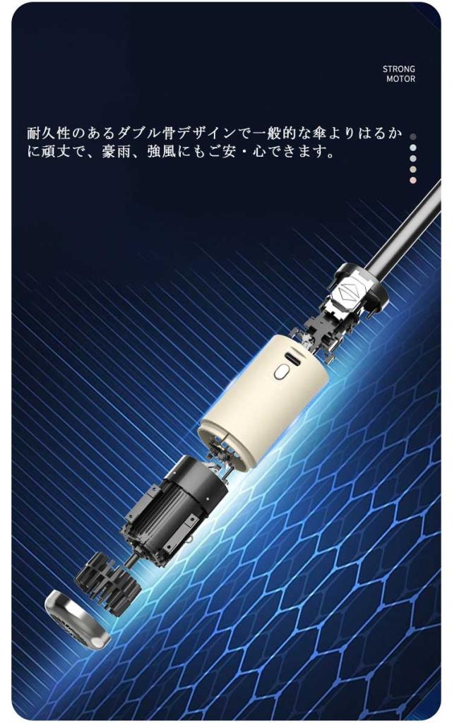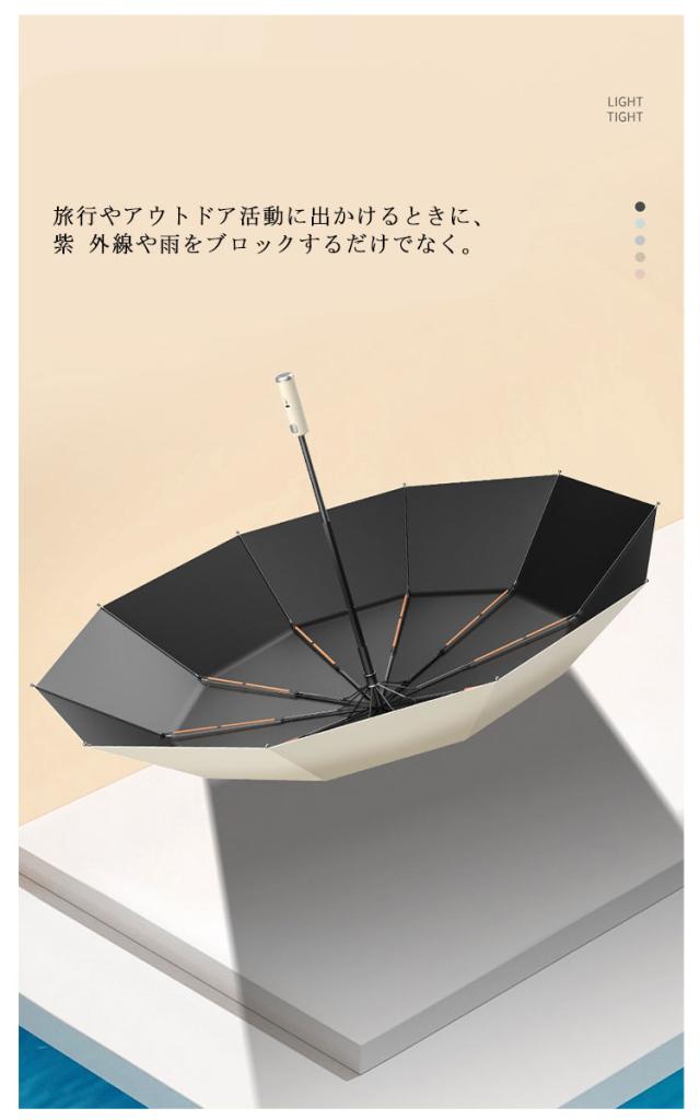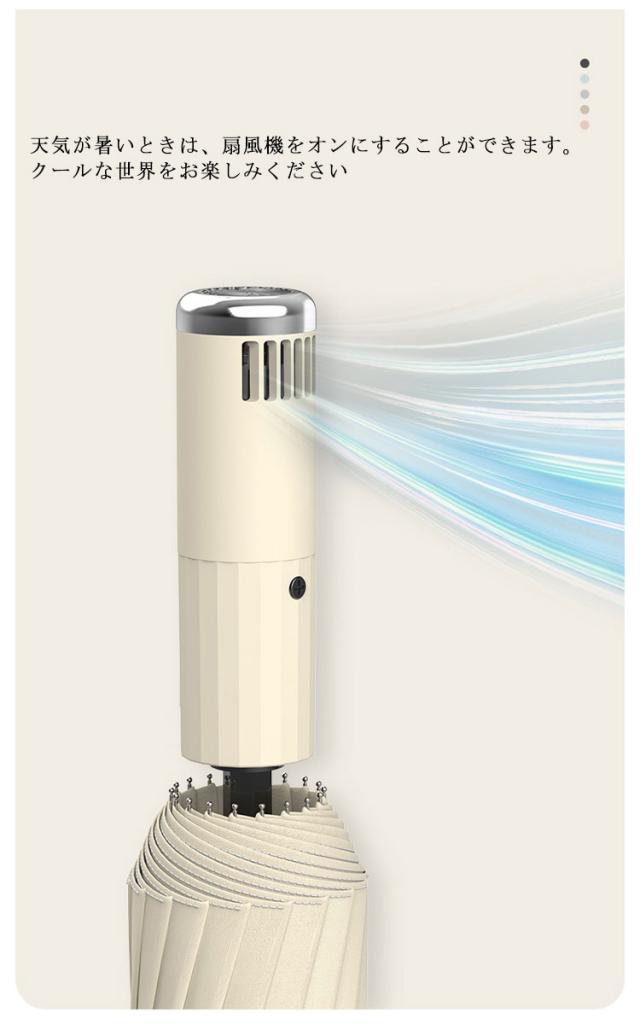 | ファン搭載!真夏の強い日差しを遮り、大切なお肌を太陽光線、紫外線からガードでき、日焼け対策アイテムとして猛暑を乗り切ります。 旅行やアウトドア活動に出かけるときに、紫 外線や雨をブロックするだけでなく。 天気が暑いときは、扇風機をオンにすることができます。クールな世界をお楽しみください 傘のハードルの上にファンを搭載。近い距離で真上から風があたるので、汗をかいた頭や顔に風があたると気化熱でしっかりと冷やしてくれます。傘にこもった空気を扇風機で追い出し、まるで木陰にいる涼しさが感じられます 耐久性のあるダブル骨デザインで一般的な傘よりはるかに頑丈で、豪雨、強風にもご安・心できます。 自動開閉機能が備わり、片手でワンタッチ操作できる折りたたみ傘です。 | |