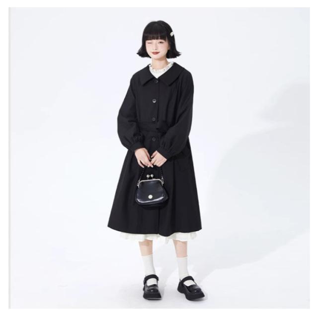 スプリングコート レディース バルーンスリーブ ベルト付き ロングコート 大人 秋コート Aライン ゆったり 春 秋 アウター 長袖 羽織り ライトアウター 上品 おしゃれ カジュアル きれいめ かわいい XS S M L