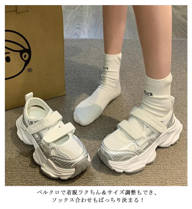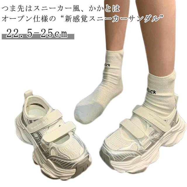 スニーカー サンダル 厚底 レディース スニーカーサンダル 疲れない 軽量 ベルクロ スポーツサンダル 厚底スニーカー 厚底サンダル 歩きやすい サンダル風 靴 メッシュ シューズ 通気性 痛くない 履きやすい カジュアル 夏 春 送料無料