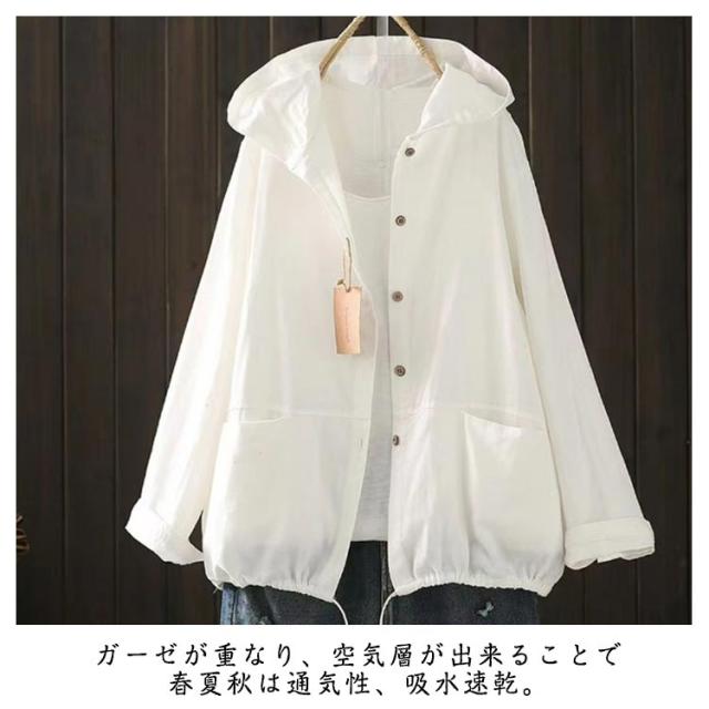 ガーゼ パーカー カーディガン レディース ダブルガーゼ カーデ フード付き パーカー 長袖 春 秋 夏 おしゃれ ポケット 無地 薄手 上品 綿 コットン トップス 大人 ゆったり シンプル カジュアル ナチュラル 通勤 体型カバー 20代 30代 40代