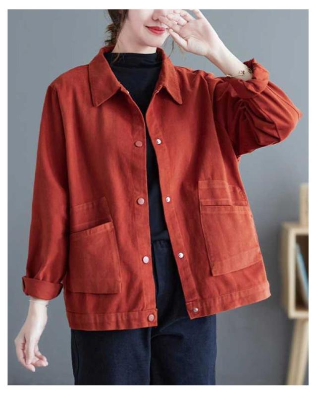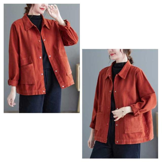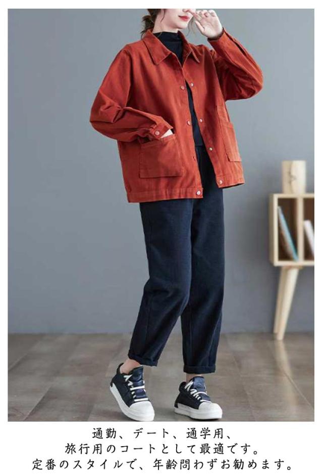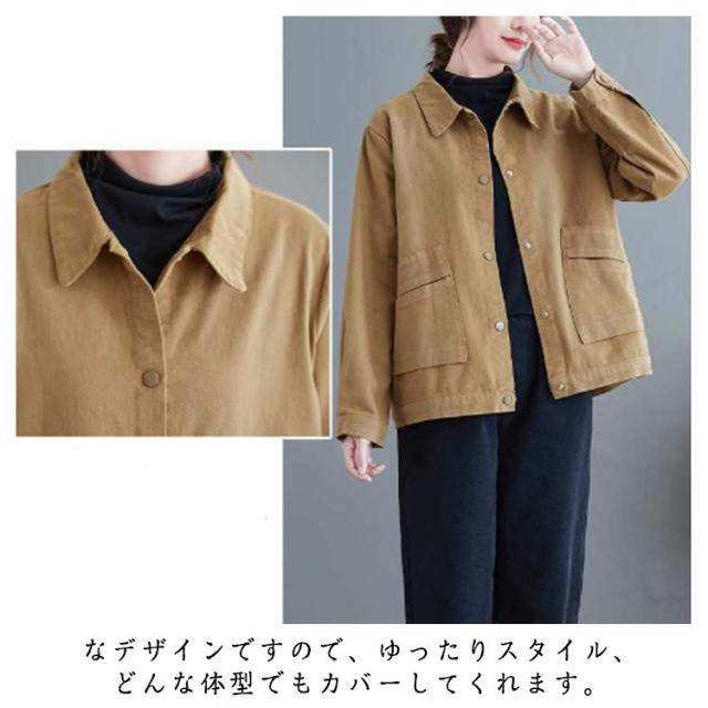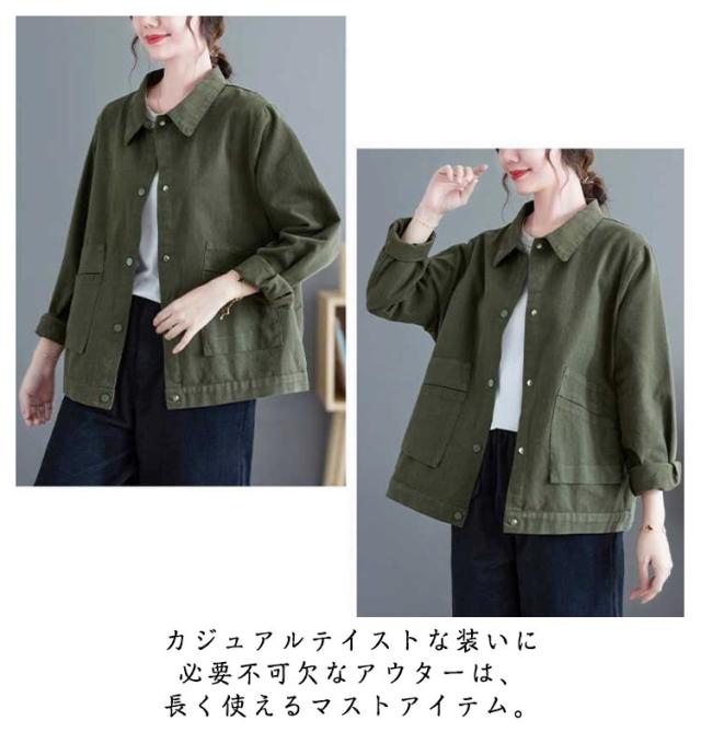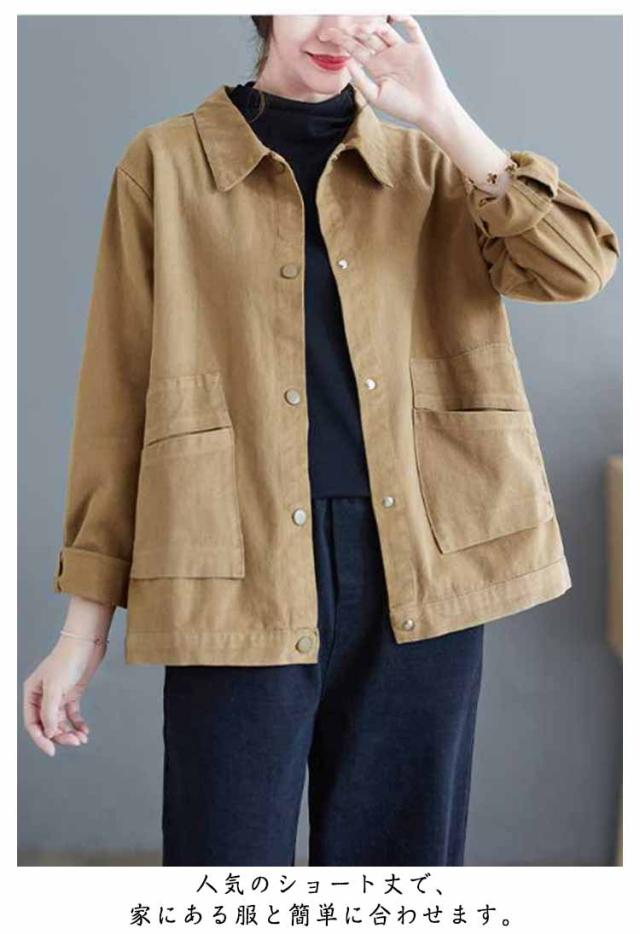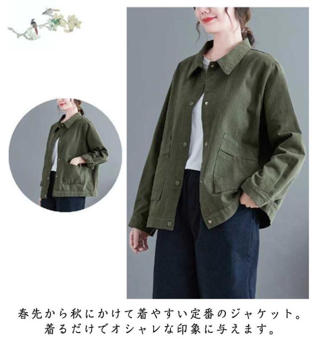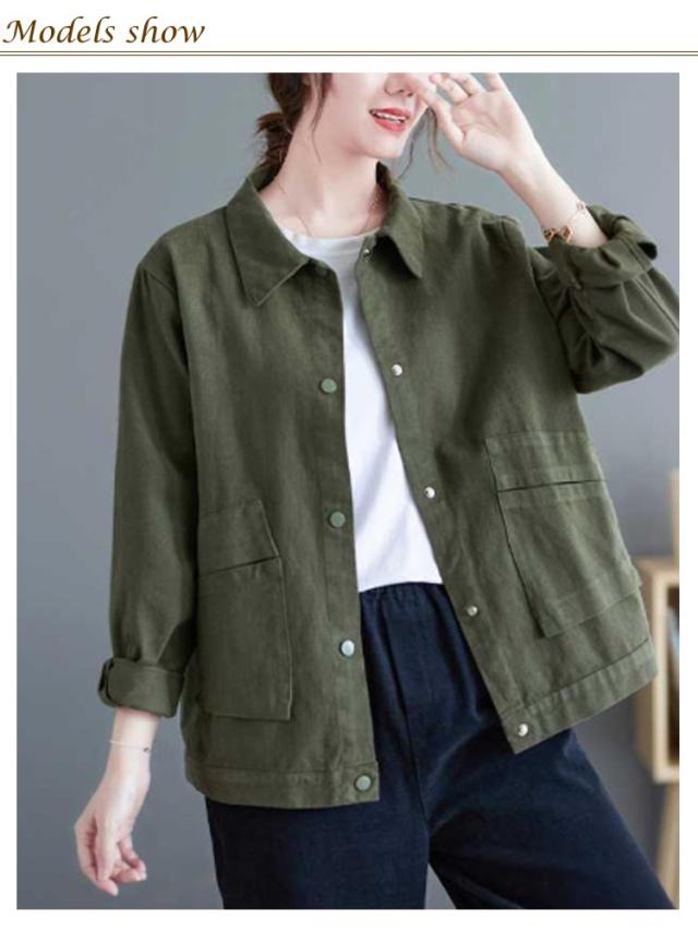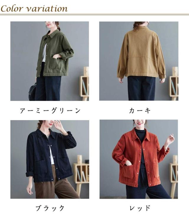 カーディガン ジャケット レディース 春 秋 羽織 ボタン付き アウター コート 無地 ショート丈 ゆったり 体型カバー長袖 きれいめ おしゃれ かわいい シンプル カジュアル 通勤 お出かけ アーミーグリーン カーキ ブラック レッド