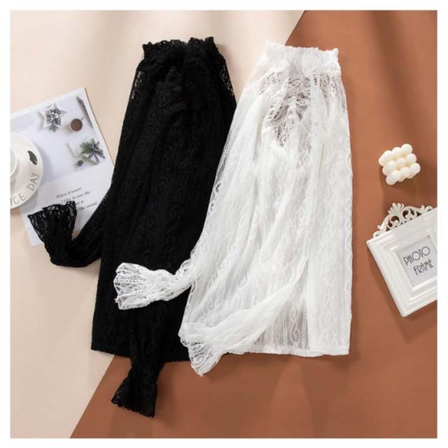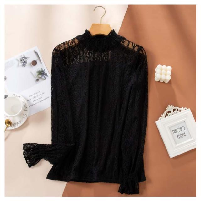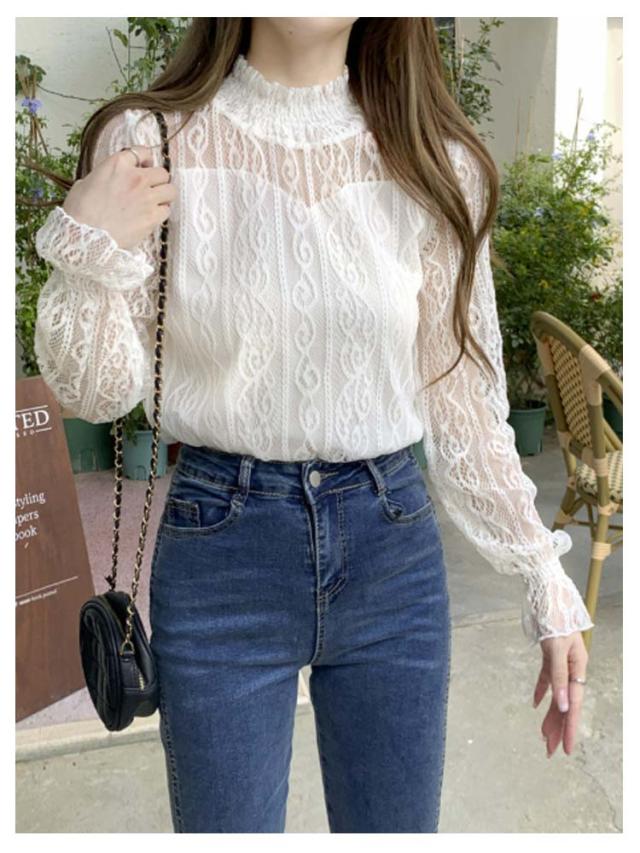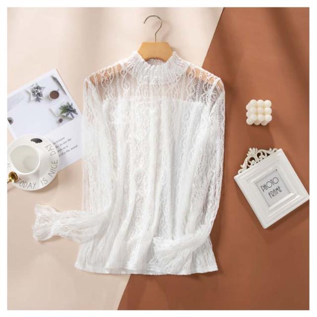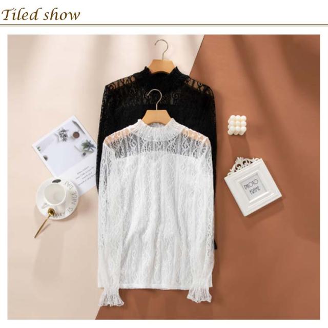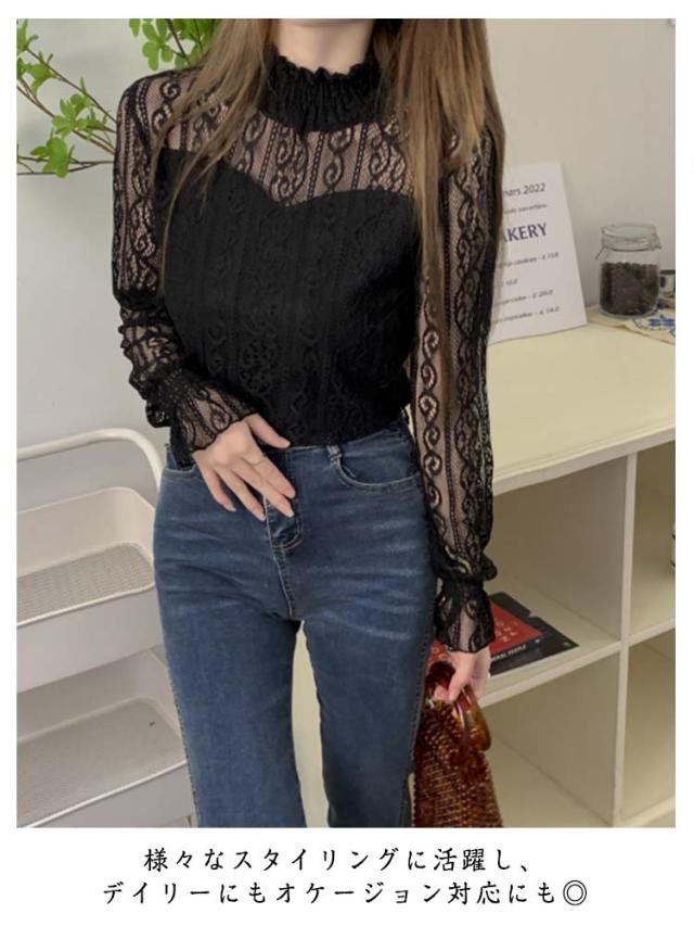 レース トップス 透け感 ブラウス シアー レディース インナー 春 夏 秋 レイヤード Tシャツ カットソー ハイネック 立ち襟 長袖 総レース シースルー シアートップス セクシー OL 通勤 おしゃれ きれいめ 普段着 デイリー