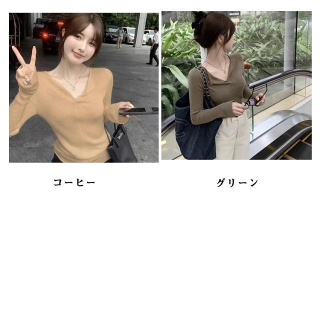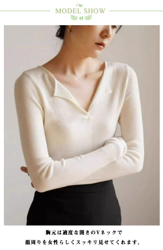 ニット 長袖 Tシャツ トップス tシャツ ニット レディース カットソー Vネックニット 秋冬 着痩せ 鎖骨見せ きれいめ 履きやすい おしゃれ 大きいサイズ スーパーストレッチ ニット インナーシャツ 長袖 ゆったり 手洗い 秋服 通勤 通学 送料無料