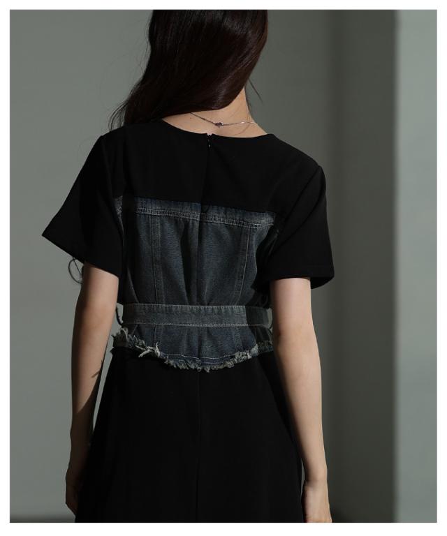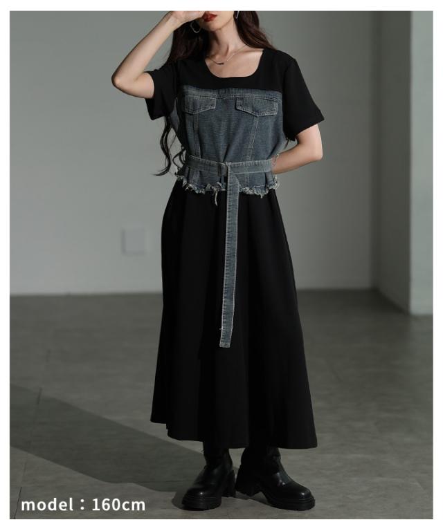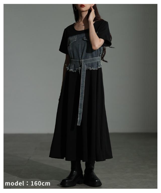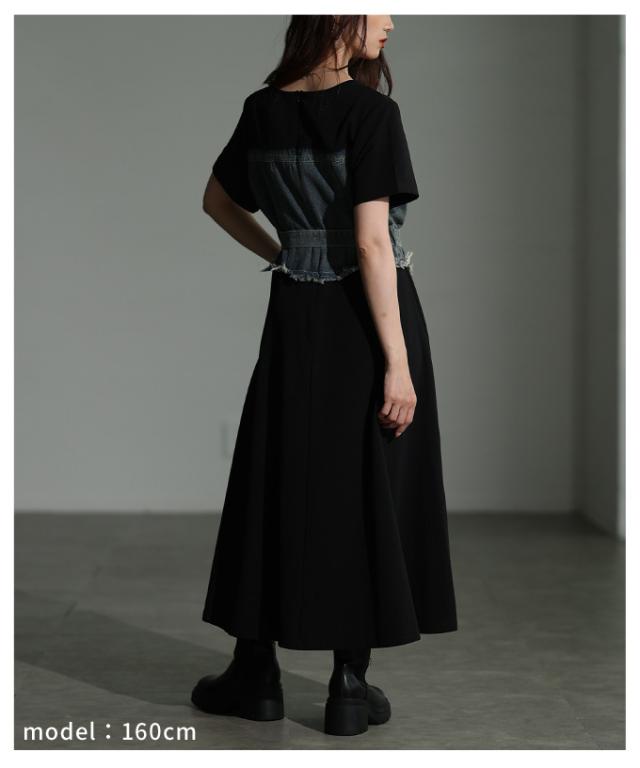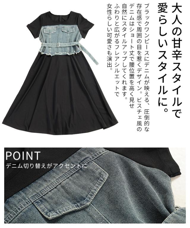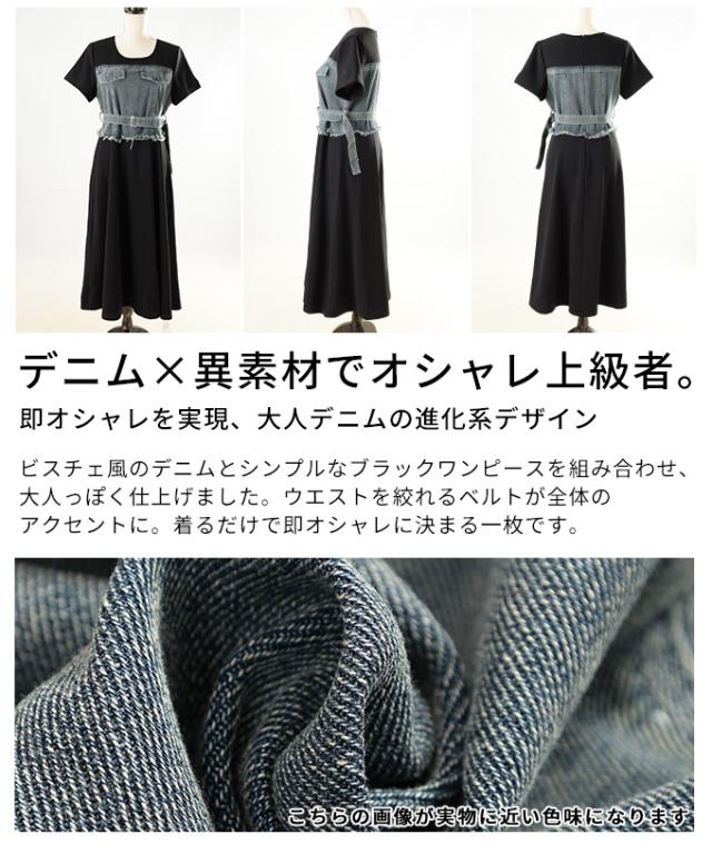 春新作 大人デニムの「進化系」ビスチェ風デニムドッキングワンピース レディース ファッション ワンピース 黒 ブラック 夏 大人可愛い 20代 30代 40代 レディースファッション カジュアル 体型カバー おしゃれ きれいめ ママ サワアラモード sawaalamode mode-10029