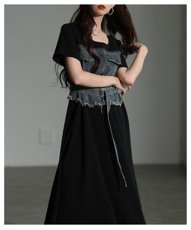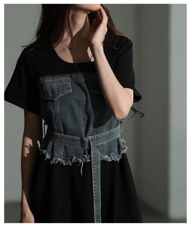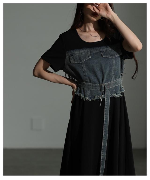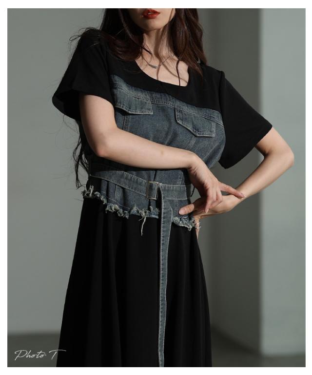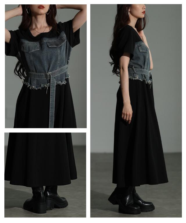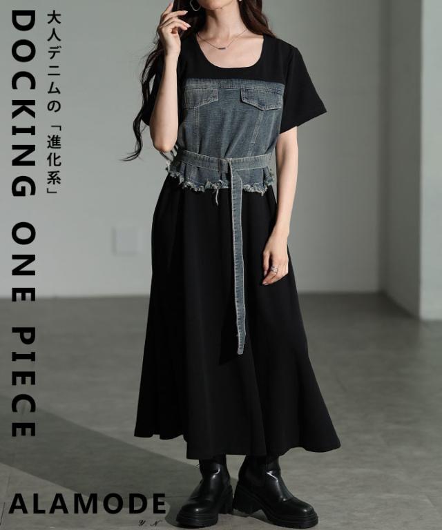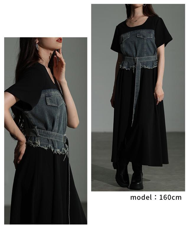 春新作 大人デニムの「進化系」ビスチェ風デニムドッキングワンピース レディース ファッション ワンピース 黒 ブラック 夏 大人可愛い 20代 30代 40代 レディースファッション カジュアル 体型カバー おしゃれ きれいめ ママ サワアラモード sawaalamode mode-10029