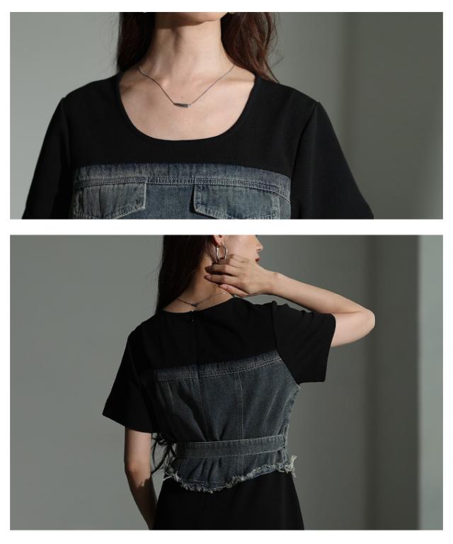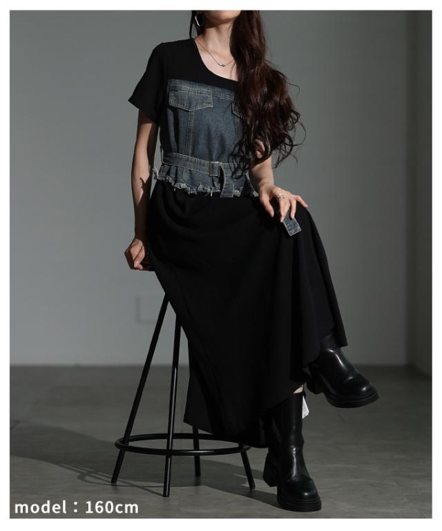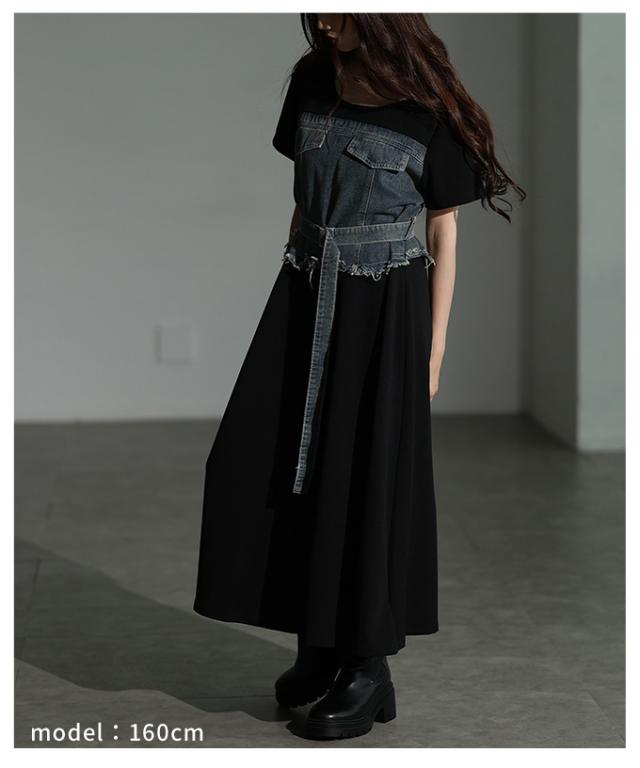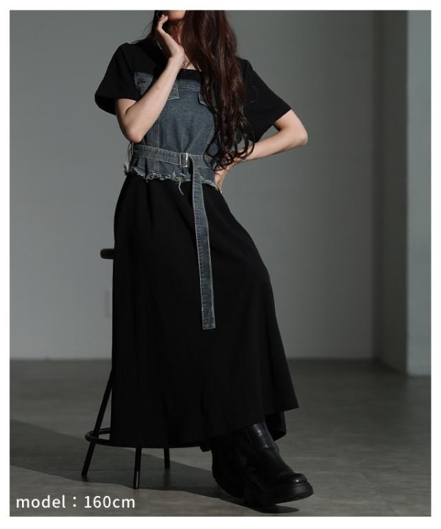 商品名: ビスチェ風デニムドッキングワンピース