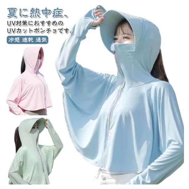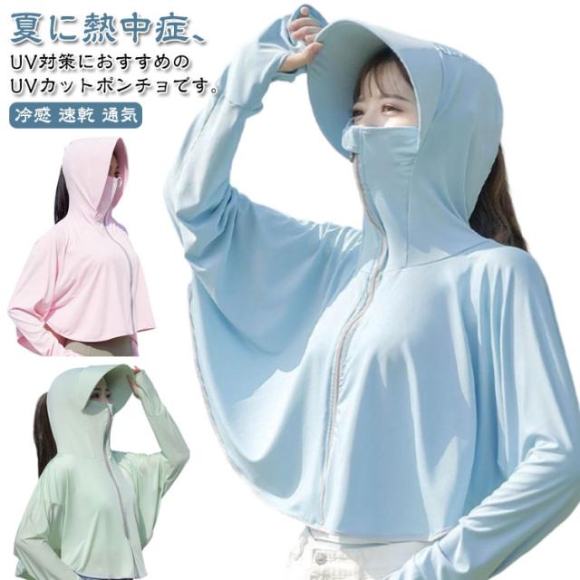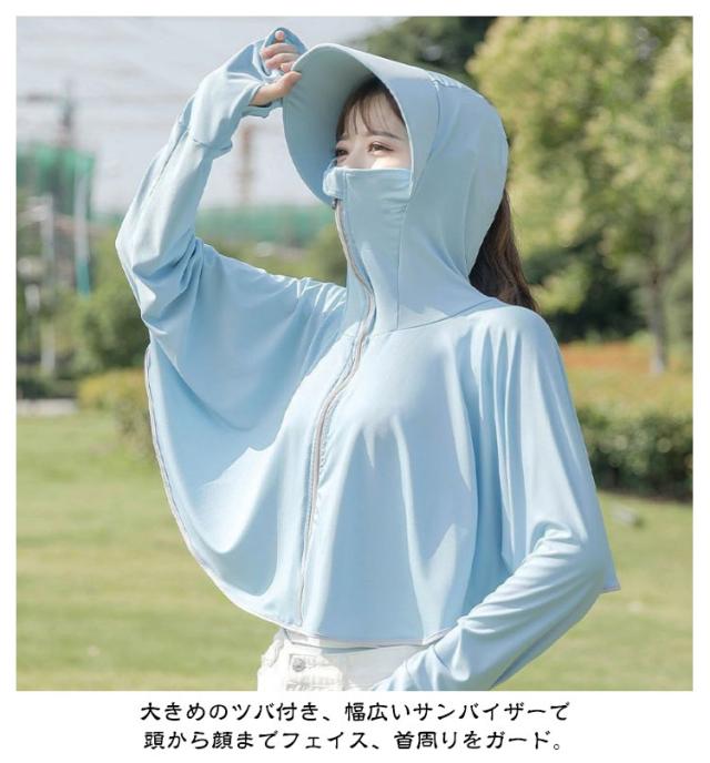 ラッシュパーカー パーカー 帽子付き 紫外線対策 ポンチョ レディース 日焼け止め パーカー uv フード付き uvカット 露出控えめ フェイスカバー付き 指穴 ユーブイカットパーカー 遮熱パーカー スポーツ 涼しい つば付き