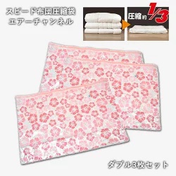 在庫処分 スピード布団圧縮袋エアーチャンネル ダブル3枚 フラワー柄 ふとん圧縮袋 Q-PON キューポン 押入れ 衣替え 収納 整理 湿気対策 梅雨 マーフィー山口 真夜中市場 QVC テレビショッピング ほんでなんぼ 訳アリ 旧品