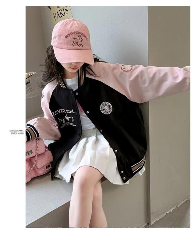子供服 スタジャン スタジャン 女の子 コート キッズ シンプル 可愛い 長袖 英語 ブルゾン スプリングコート 可愛い 春秋 通気性抜群 野球服 上着 スウェット 肌触り 通園 通学