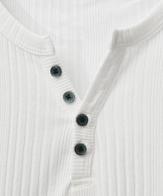 【テレコヘンリーネック7分袖Tシャツ】■Design / デザイン