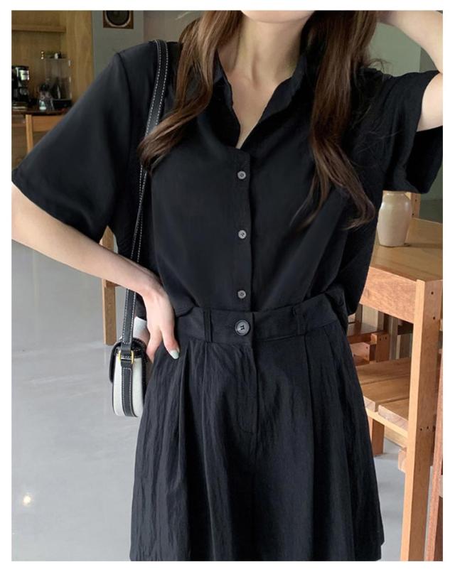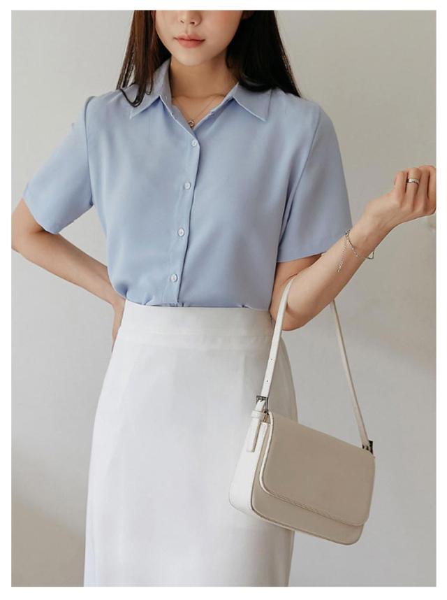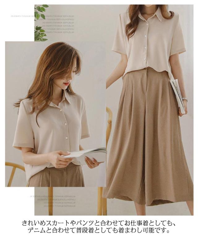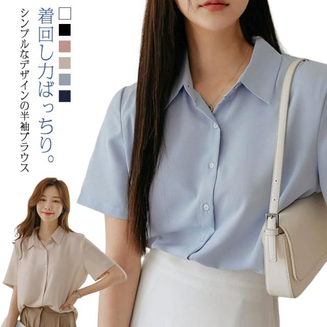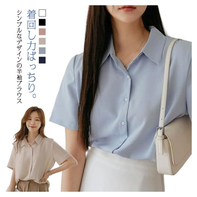 襟付き レディース ブラウス おしゃれ 事務服 シャツ ブラウス ワイシャツ 半袖 レギュラー 開襟 yシャツ ブラウス 大人 トップス 半袖 レギュラーカラー フェミニン オフィスカジュアル フォーマル 入学式 卒業式
