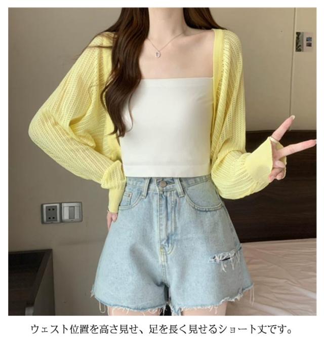 | かぎ編みニットのサマーニットカーディガンです。 涼し気な雰囲気にしてくれるデザイン。 さらっとした素材で夏に大活躍ボレロ、ドレスや洋服を隠さずに気になる二の腕・肩まわりをさりげなくカバー♪ ウェスト位置を高さ見せ、足を長く見せるショート丈です。 ラウンドした裾が、コーデに女性らしさをプラスしてくれます。 日よけ対策にも活躍する1着で、オフィスなどでの夏の冷房対策としても◎ | |