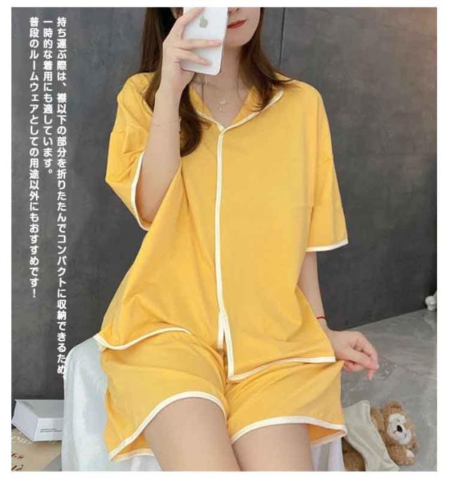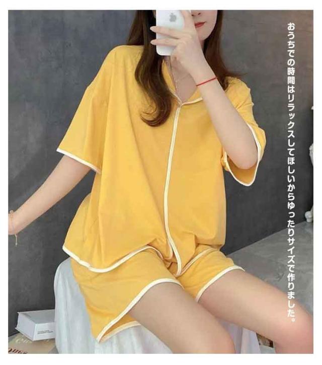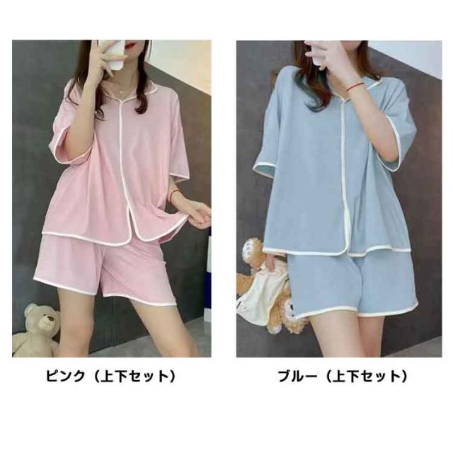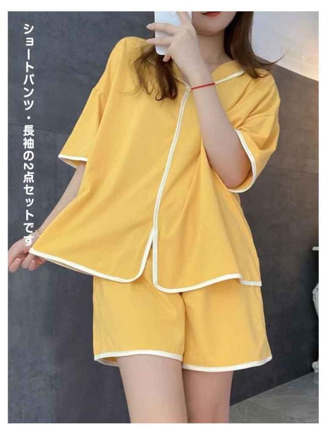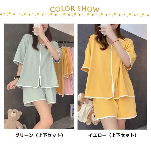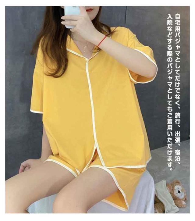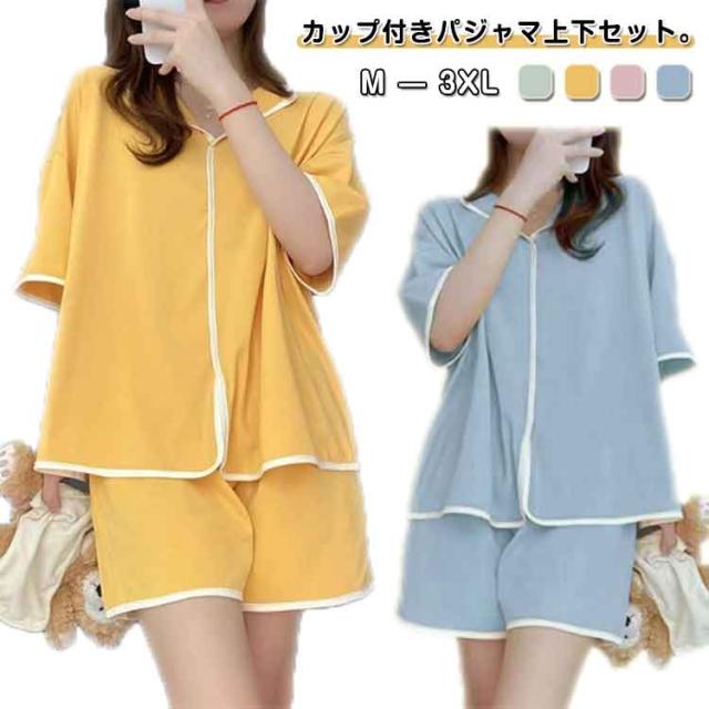Vネック 夏用 半袖 夏 パンツ カップ付き レディース セットアップ 短パン パジャマ ショートパンツ ルームウエア ハーフパンツ 上下セット ズボン ウエストゴム 無地 パジャマ 部屋着 女性 婦人 大人 カジュアル セット