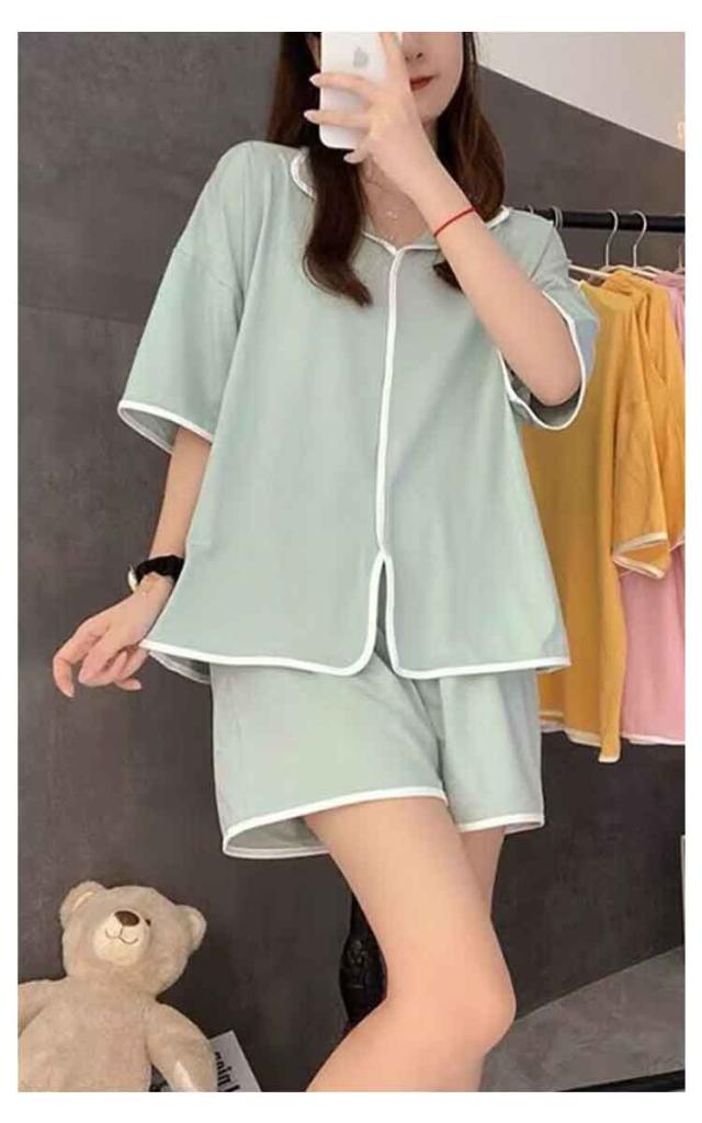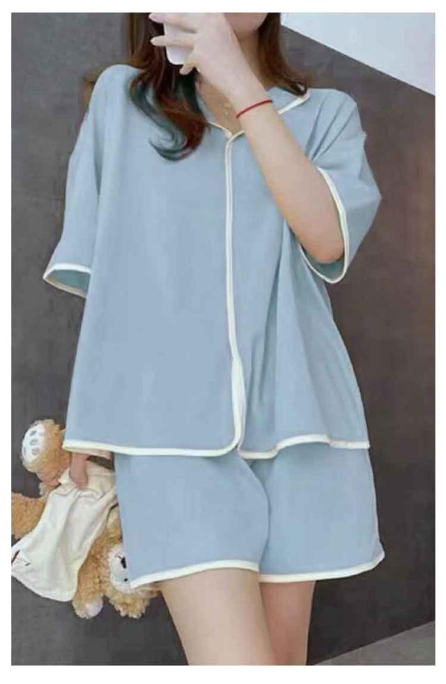 | カップ付きパジャマ上下セット。 ショートパンツ・長袖の2点セットです。 おうちでの時間はリラックスしてほしいからゆったりサイズで作りました。 一体型カップ付きでちょっとそこまでのお出かけや急な来客時も安心。 自宅用パジャマとしてだけでなく、旅行、出張、宿泊、入院などする際のパジャマとしてもご着用いただけます。持ち運ぶ際は、襟以下の部分を折りたたんでコンパクトに収納できるため、一時的な着用にも適しています。普段のルームウェアとしての用途以外にもおすすめです! | |