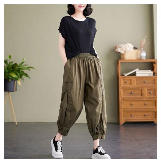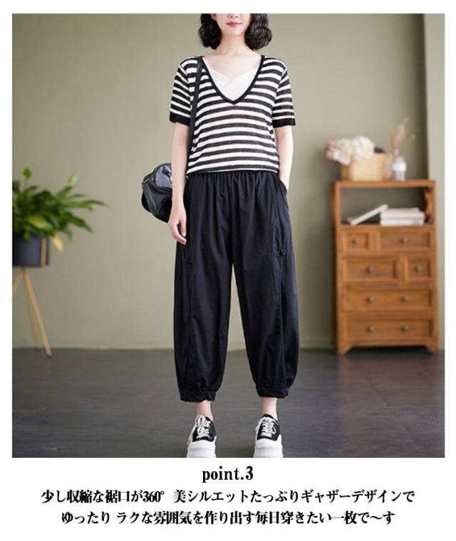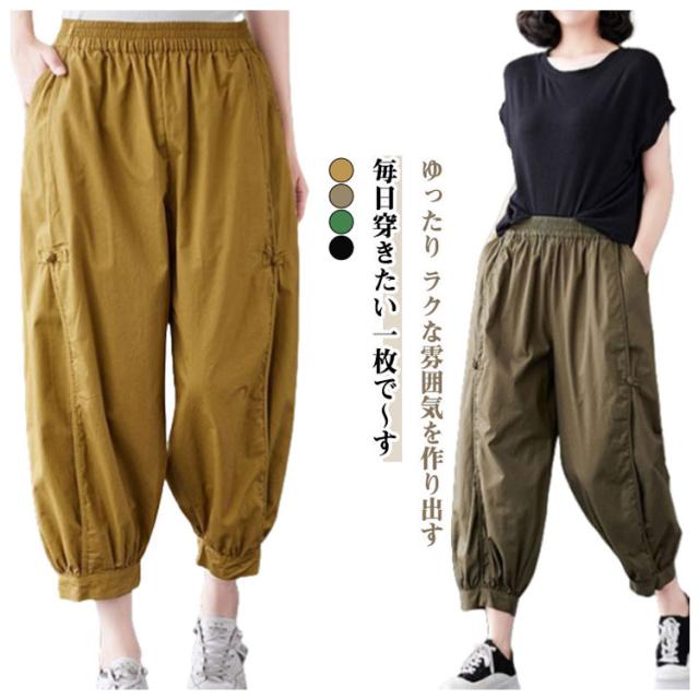 バルーンパンツ パンツ ハロンパンツ ギャザー ロング丈パンツ 綿 ワイドパンツ レディース アンクルパンツ 春 夏 秋 コクーンパンツ イージーパンツ ロングパンツ カジュアル ウエストゴム ボトムス 9分丈 バルーンパンツ 着痩せ ゆったり