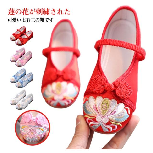 痛くない楽ちん靴 草履のかわりに履ける靴 七五三の靴 草履 女の子 蓮の花の刺繍 七五三 歩きやすい 和柄の靴 歳 子供靴 七五三 7歳 3歳