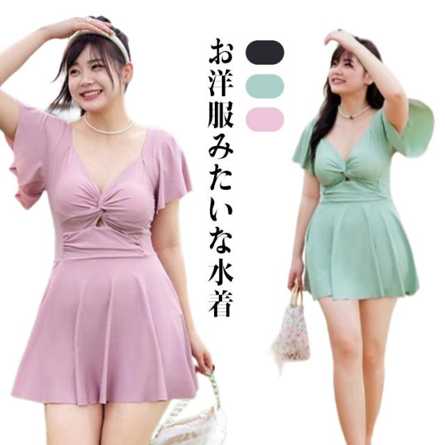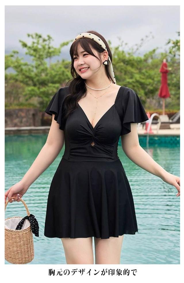 XL ワンピース 5XL 体型カバー水着 3XL ショートパンツ 袖 2XL 4XL フリル ぽっちゃり 水着 Vネック かわいい おしゃれ 無地 水着 レディース ハイウエスト 露出控えめ カットアウト カッティング 二の腕 お尻