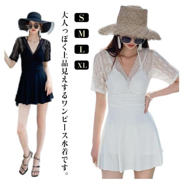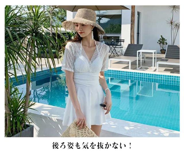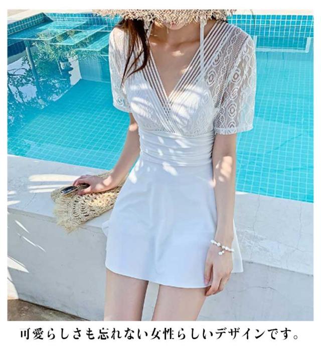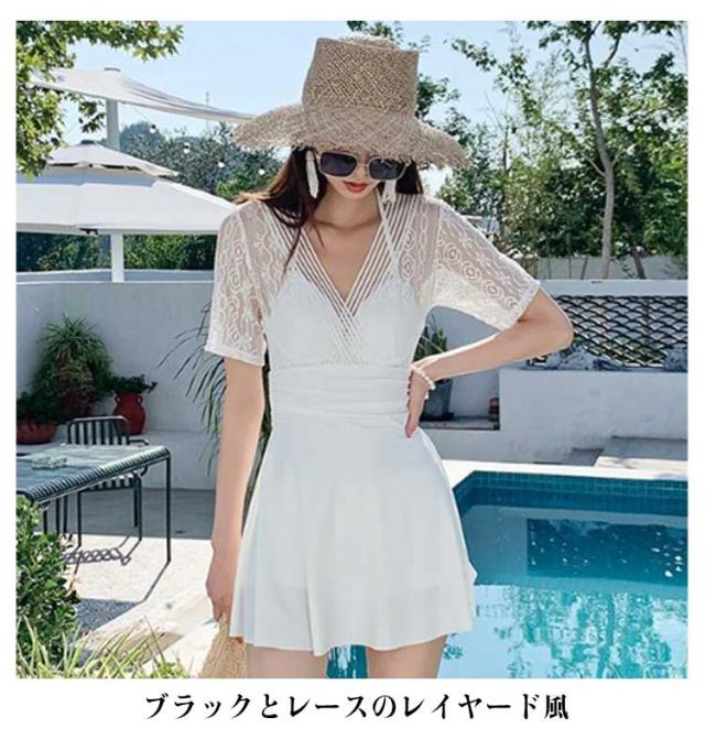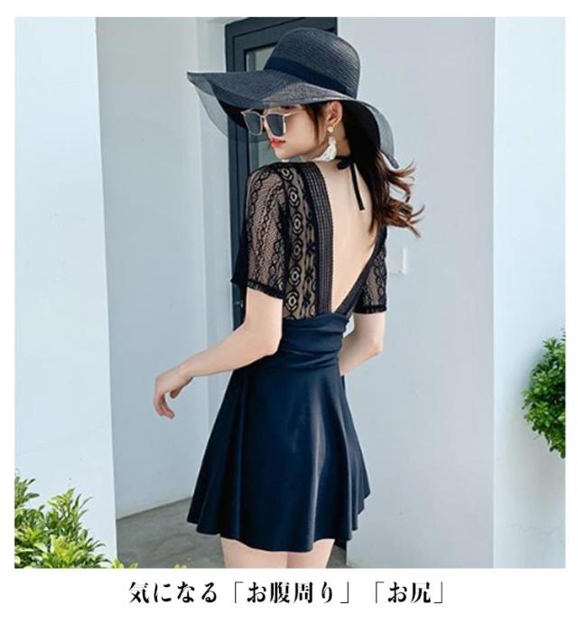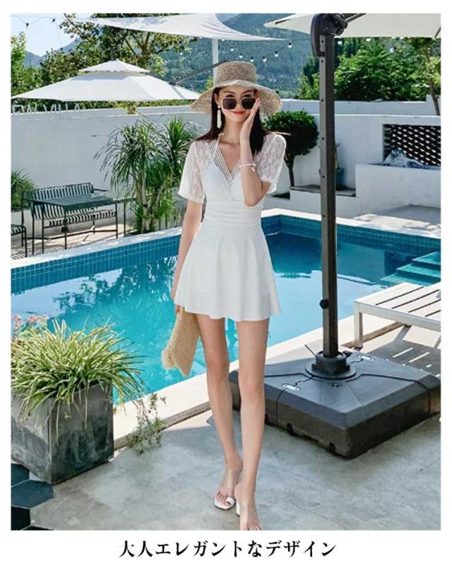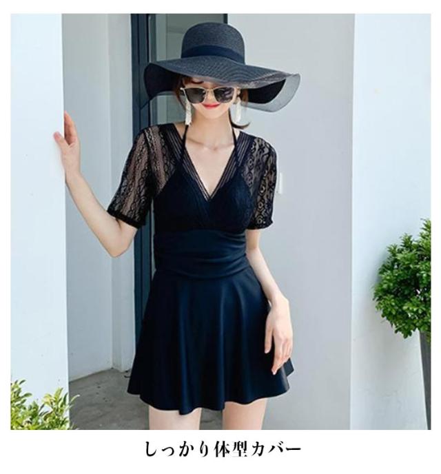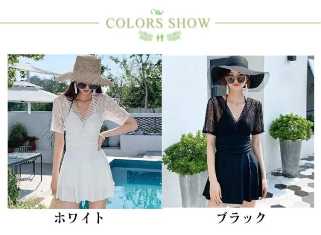 レディース ブラック 体型カバー水着 ワンピース 体型カバー オールインワン カバー ワイヤー入り ワンピース カバーアップ バックシャン 大きいサイズ ママ水着 ぽっちゃり お腹 太もも ワンピース水着 水着 上品 ショートパンツ ホワイト 白 レース 人気 可愛い