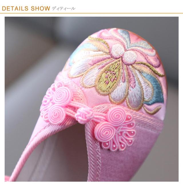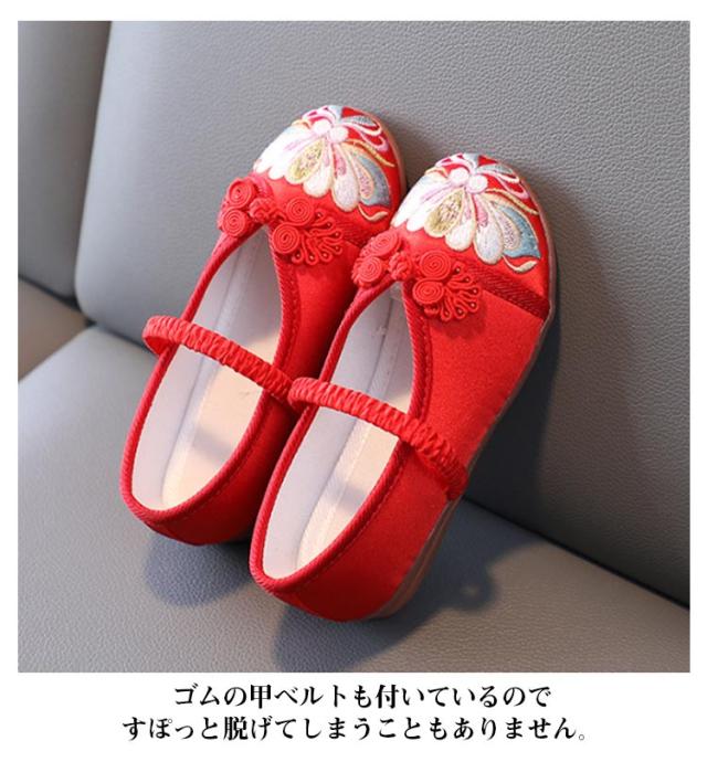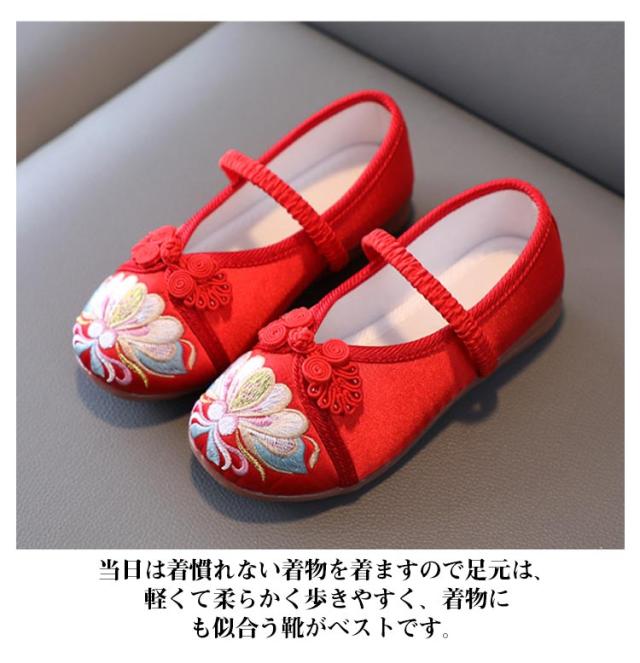 和柄の靴 蓮の花の刺繍 七五三 歩きやすい 草履のかわりに履ける靴 チャイナ靴 七五三の靴 草履 痛くない楽ちん靴 女の子 子供靴 歳 7歳 3歳