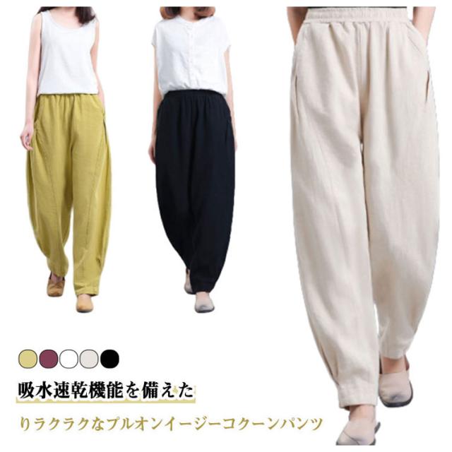 コクーンパンツ パンツ ワイドパンツ イージーワイドパンツ イージー ガウチョパンツ ボトムス バルーンパンツ 体型カバー ハイウエスト ワイドパンツ 春パンツ タック入り ポケット付き ゆったり タック ワイド 大きいサイズ