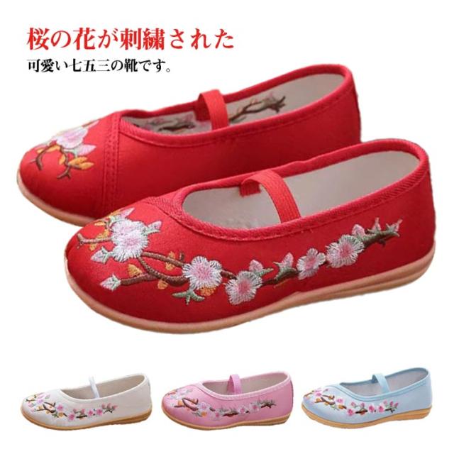 草履 さくら 子供靴 痛くない 赤 花柄 キッズ お正月 ベビー チャイナ靴 シューズ 女の子 スリッポン 桜 赤ちゃん 靴 ぺたんこ靴 7歳 七五三 刺繍 和柄の靴 女の子 3歳 和服 履物 七五三 軽量 歩きやすい 柔らかい おしゃれ 楽ちん