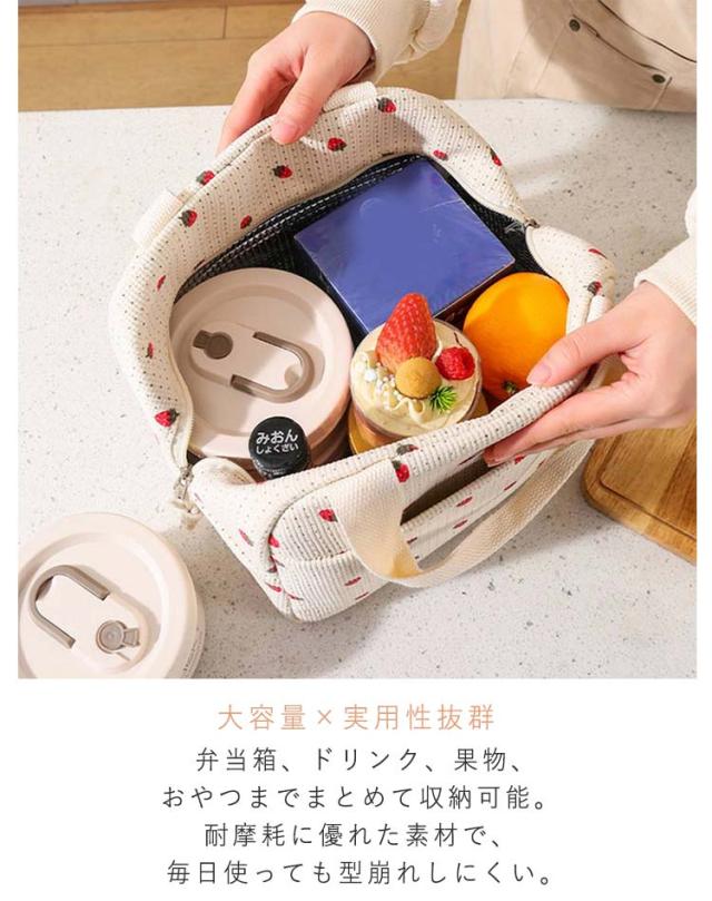 保温 手提げ ランチバッグ チェック柄 コーデュロイ 保冷 大容量 弁当バッグ 弁当バッグ ランチトート レディース 花柄 保温 イチゴ柄 かわいい