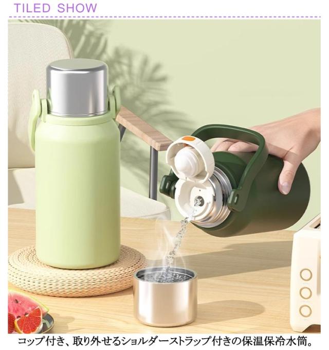 | 800ml 1000ml 1500ml 保温&保冷水筒/コップと肩紐付 コップ付き、取り外せるショルダーストラップ付きの保温保冷水筒。 真空2重構造を採用しているので保冷、保温性は抜群 取り外せるショルダーストラップが付いているのでお子様用にも◎ キャンプやアウトドア、通勤通学など幅広くお使いいただけます。 | |
