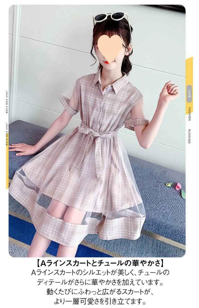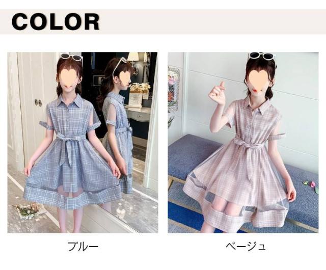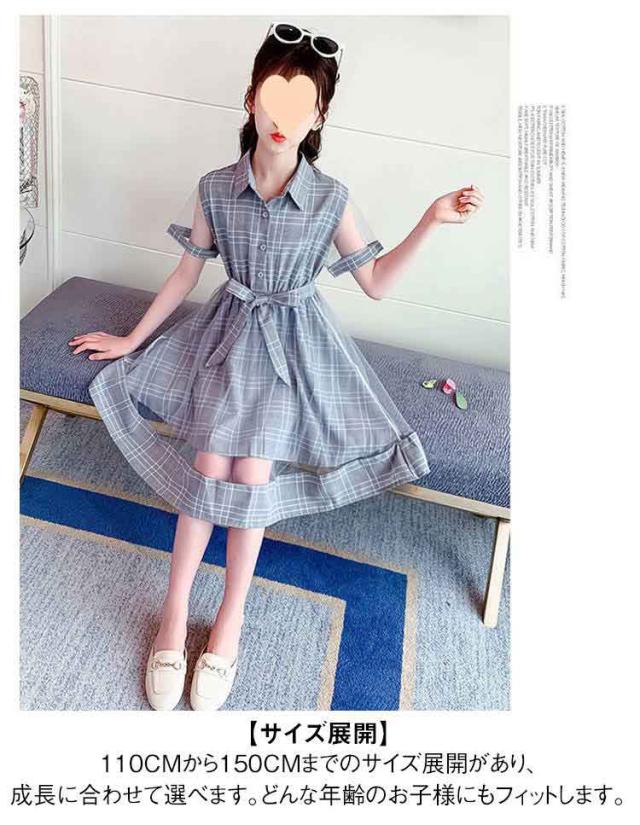 ワンピース 女の子 フォーマルワンピ オシャレ ワンピース 子供服 結婚式 ワンピース 卒園式 半袖 卒業式 入学式 受験用 チェック柄 子供服 夏ワンピ キッズ ガールズ Aラインスカート チュール 発表会 リボンベルト お洒落 110cm 120cm 130cm 140cm