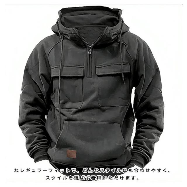 スウェット トップス リラックス スエードライク スエードライク フェイクスウェード ポケット プルオーバー デザイン パーカー パーカー プルパーカー 長袖 大きいサイズ フード フーディ ワーク アウトドア キャンプ