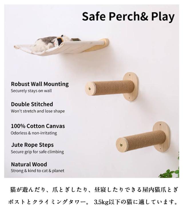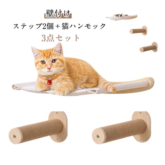 インテリア 安全 猫 ハンモック 階段 キャットウォーク 麻 木製 壁付け キャットステップ キャットステップ 送料無料 人気 猫ハンモック DIY ステップ2個 棚板 運動不足 ストレス解消 ペット 小動物用品 猫用品