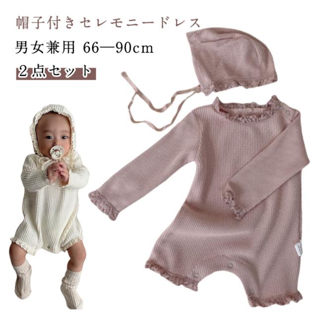 新生児 夏 男の子 春夏 女の子 セレモニードレス お宮参り 春 長袖 退院 80 退院着 セレモニードレス ロンパース ベビー服 ワッフルロンパース 90 セット ベビー 73 帽子 ボンネット 前開き 赤ちゃん 子供服 夏用 綿 ワッフル 66