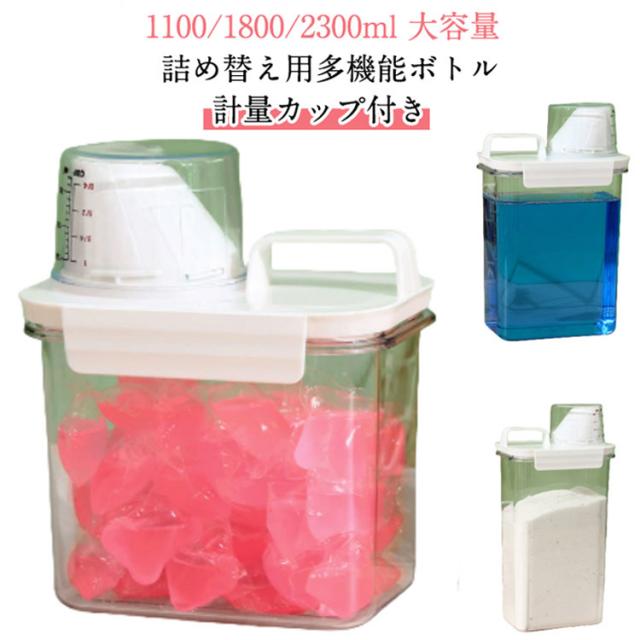 柔軟剤 計量カップ付大容量 詰め替え用ランドリーボトル つめかえ 粉洗剤 粉剤 漂白剤 洗剤ボトル 2300ML 空ボトル 洗濯用 粉剤 気密洗濯洗剤容器 洗剤収納ボック スナッツ用 小麦粉 保存容器 1100ML 1800ML