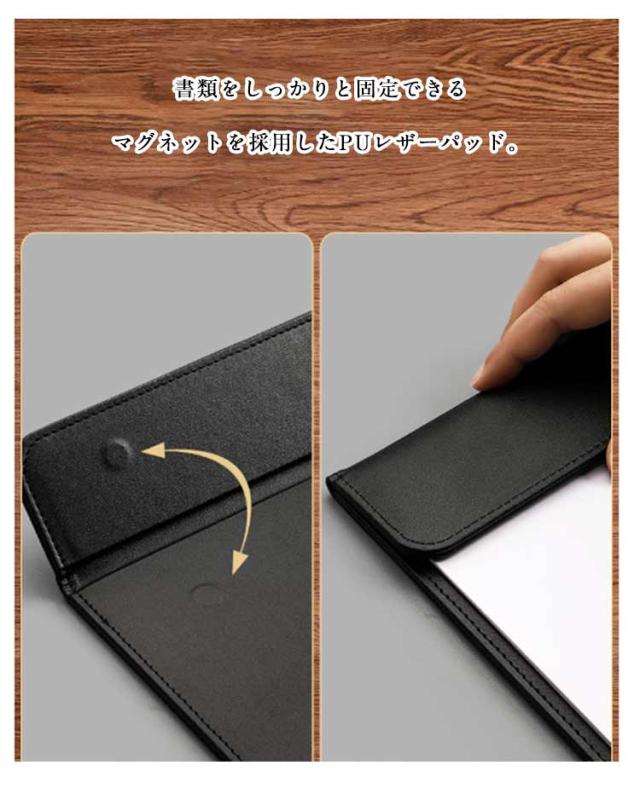 レザーパッド ファイル マグネット式バインダー クリップパッド ファイル クリップ A4対応 ペンホルダー A4 ビジネス パッド クリップファイル 持ち運ぶ PUレザー A4フォルダー 下敷き 契約書サイン専用 オフィス用品 事務用品