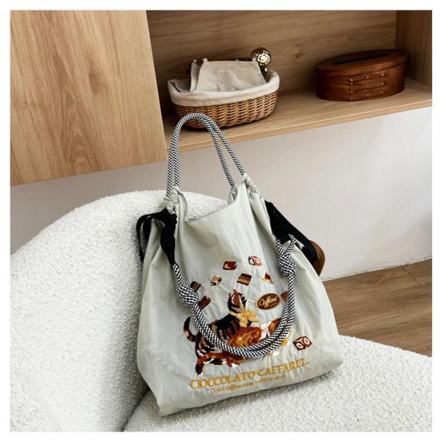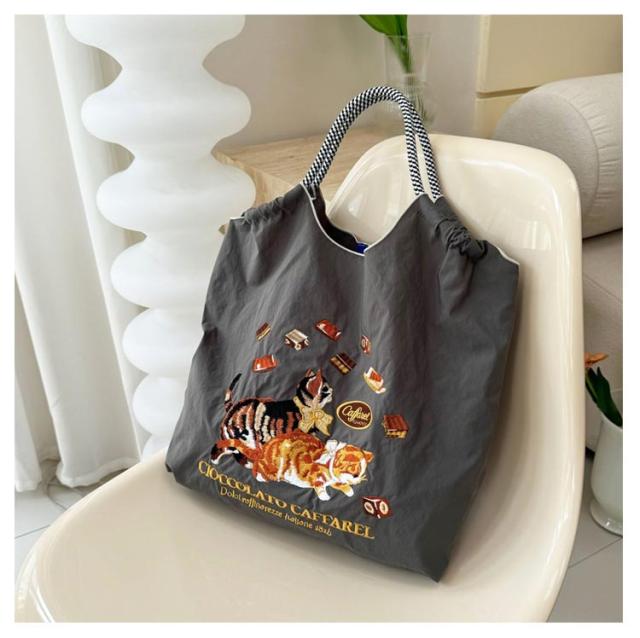 大きめ 猫 エコバッグ 肩掛け A4 刺繍 手提げバッグ ナイロン ショッピングバッグ 刺繍バッグ 動物 花柄 軽量 通勤 折りたたみ 買い物 刺繍 おしゃれ サブバック かわいい アニマル刺繍 トートバック 可愛い 鞄 プレゼント ギフト トートバッグ 送料無料
